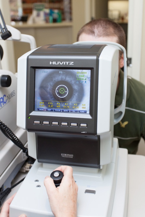 The first component is the auto refraction. Auto refraction is a computer determined measurement of a person’s prescription. The prescription is not exact, but gives the doctor good baseline information or a starting point of the subjective refraction. It is of particular benefit for when dealing with non-communicative people such as young children or those with disabilities.